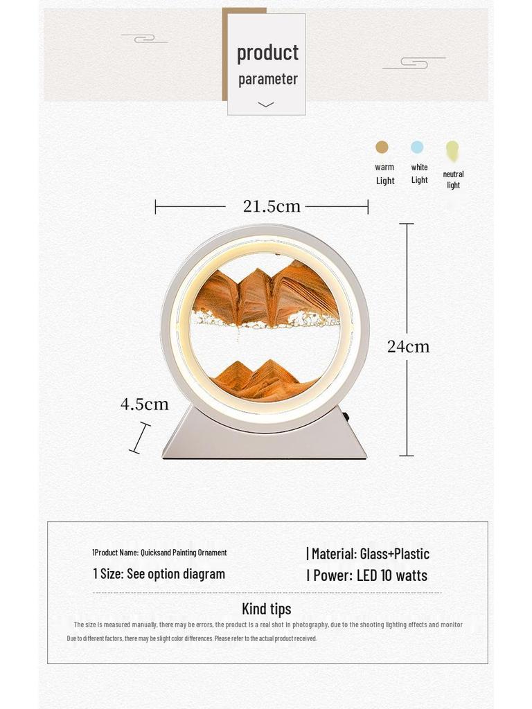 3D Ночник с зыбучим песком: Креативный стеклянный настольный светильник и подарочное украшение