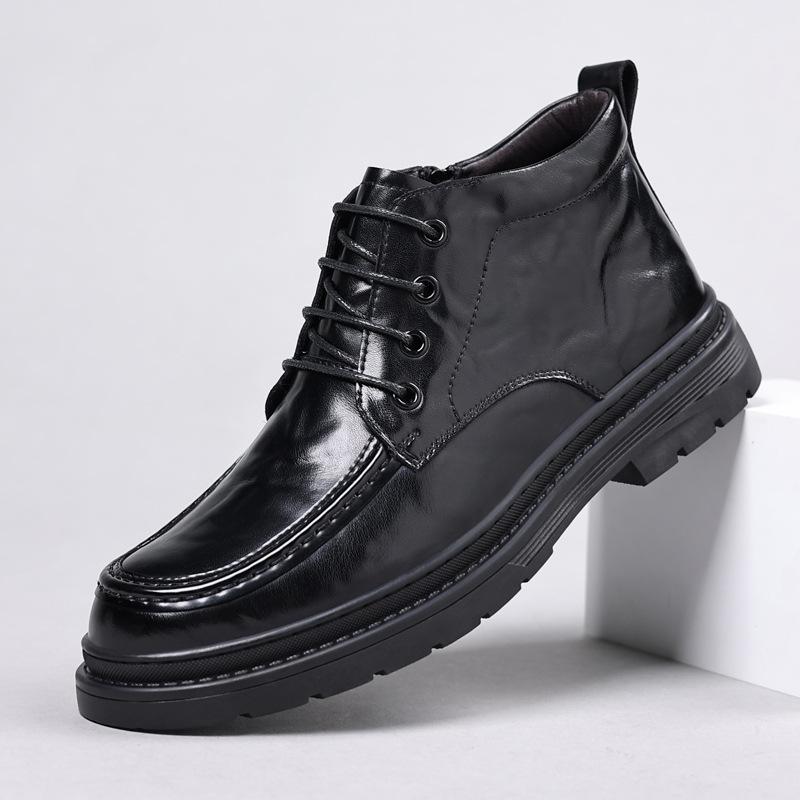Зимние теплые мужские кожаные туфли кожаные повседневные хлопковые туфли деловые туфли-оксфорды с высоким голенищем кожаные ботинки бархатные мужские туфли ботинки