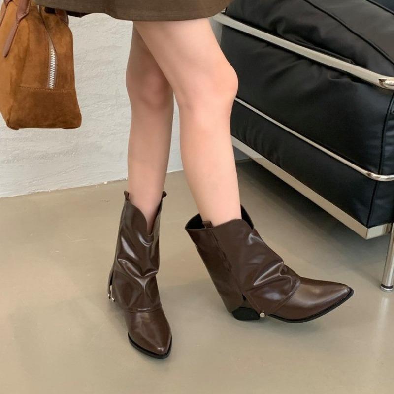 Ботильоны-брюки с острым носком, ботинки в стиле уличной моды, женские новые осенне-зимние ботинки в стиле вестерн, удобные квадратные и зимние ботинки