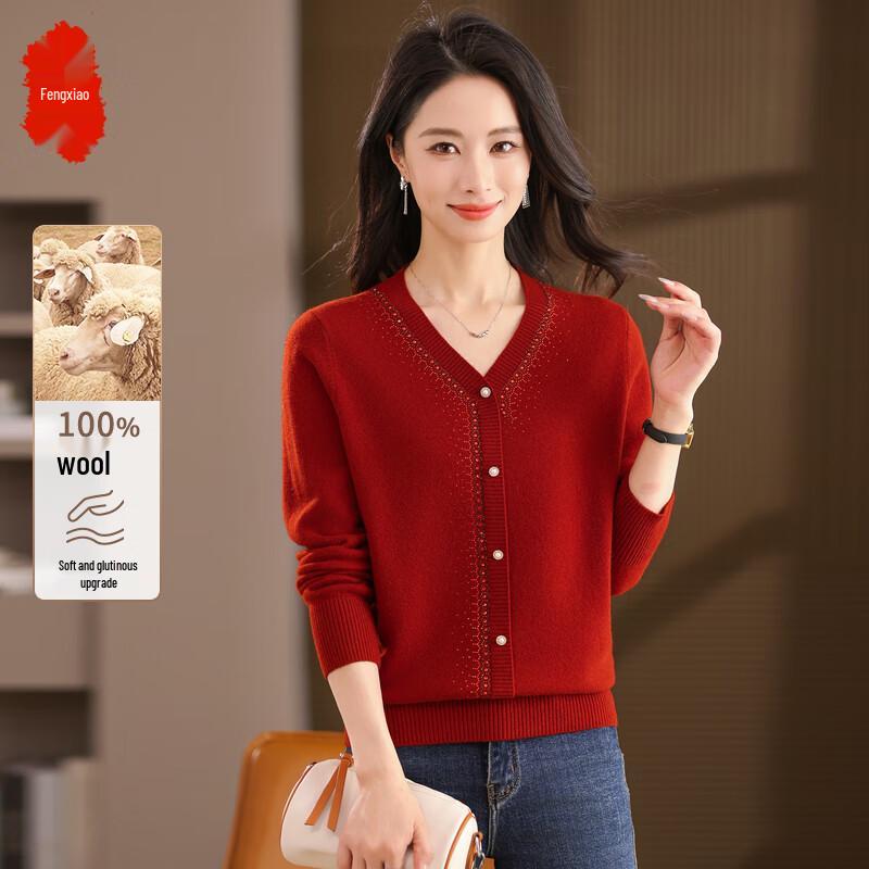 Women's 100% Wool V-neck Cardigan Sweater — купить товар онлайн с бесплатной доставкой по всему миру!