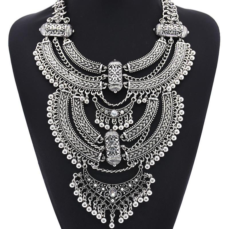 Преувеличенное ретро серебряное гравированное ожерелье с подвеской на ключицу