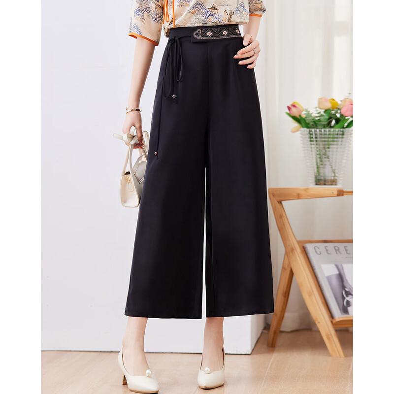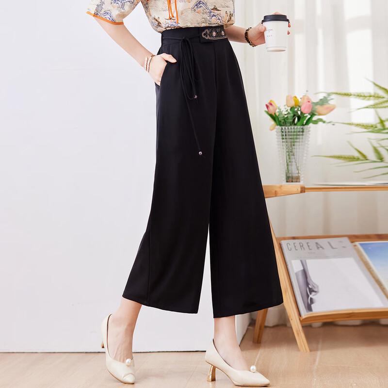 Pasite New Chinese Style Retro High-Waist Wide-Leg Leisure Pants
