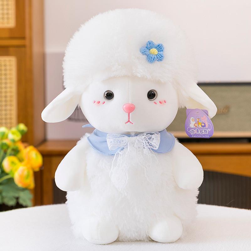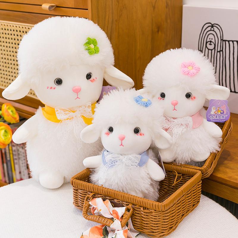 Cute Flower Lace Bow Scarf Plush Cartoon Lamb Doll Gift For Kids And Collectors