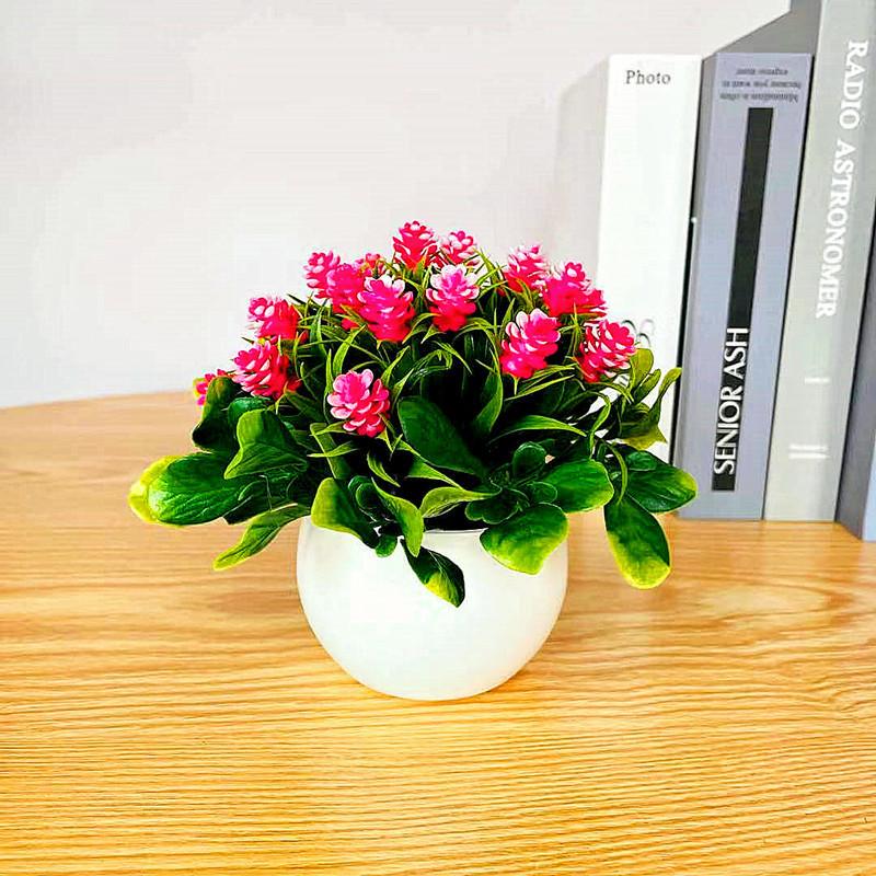 Это миниатюрное искусственное растение с реалистичными пионовыми бутонами и акцентами в виде сосновых шишек, создано для настольных экспозиций или подарочных презентаций.. Изготовлен из прочного пластика методом литья под давлением, имеет высоту 6 дюймов и демонстрирует яркие цвета, включая закатно-красный, фиолетовый, желтый, малиновый, розовый и ярко-красный.. Идеально для украшения столов на мероприятиях или для украшения дома, это не требующая ухода альтернатива живым растениям.. Для сохранения свежего вида протирайте влажной тканью.