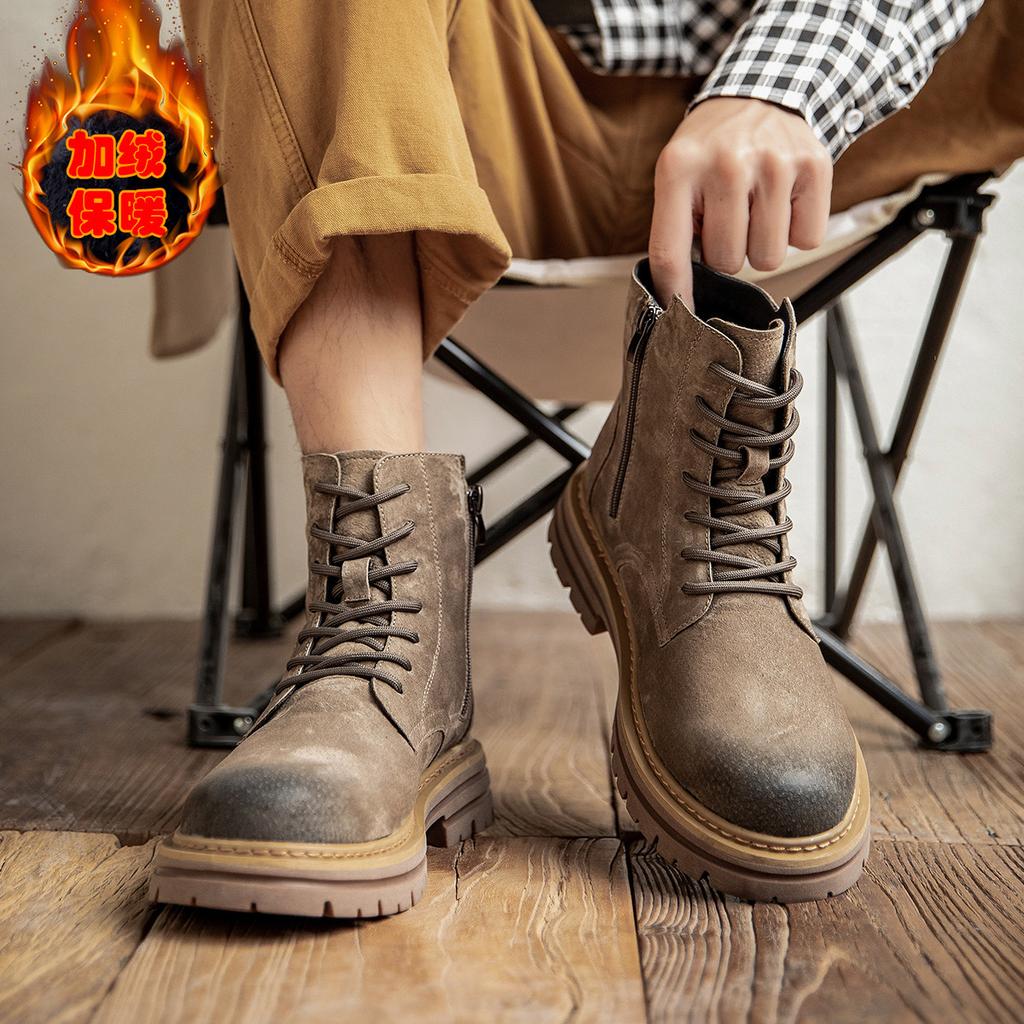Ботинки Мартина, большие желтые ботинки, мужские 2025 новые кожаные на толстой подошве зимние бархатные для увеличения роста, не гниющие ботинки-инструменты, тренд