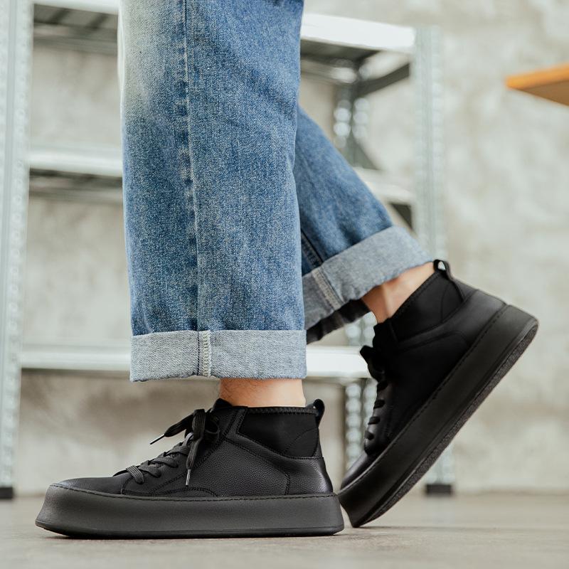 Мужская обувь Японский бархат высокие кеды 2025 осень и зима кожаная толстая подошва износостойкие ботинки Мартина уличные повседневные рабочие ботинки
