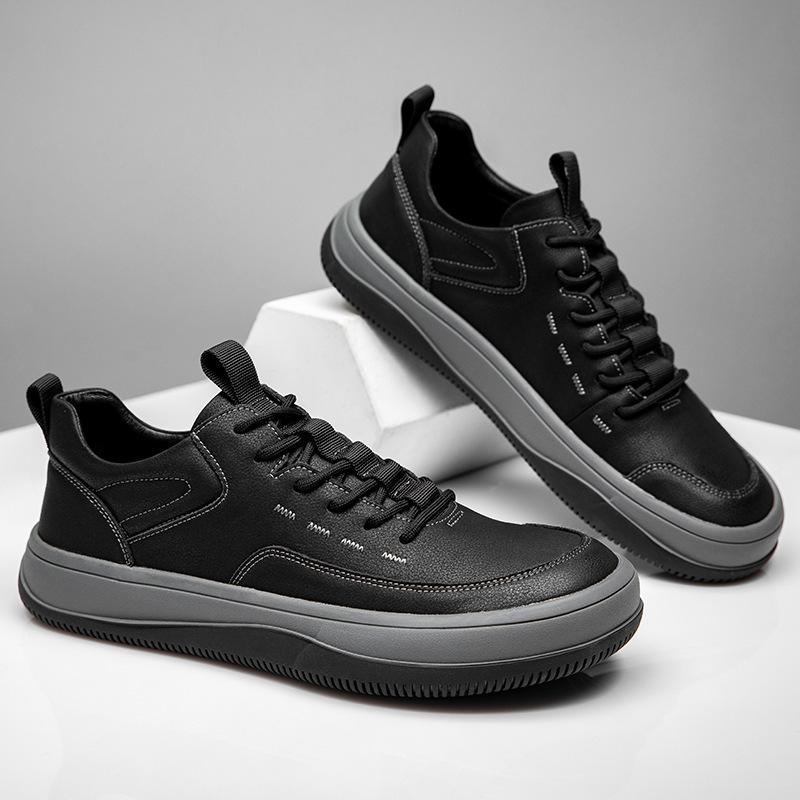 2025 весна новая кожаная мужская обувь модная универсальная кожаная обувь платформа нескользящая повседневная обувь мужская обувь кривой клоун