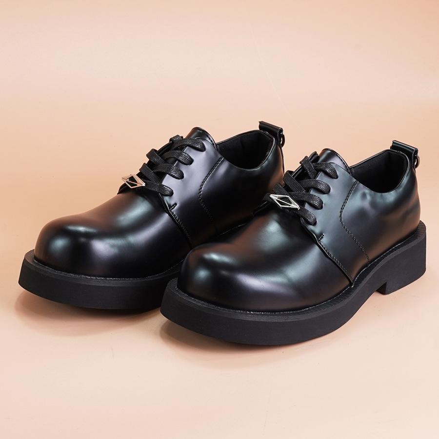 Нишевые кожаные туфли дерби с большой головой мужские в британском стиле черные с круглым носком на платформе маленькие кожаные туфли увеличивающие рост универсальные для работы трендовые туфли