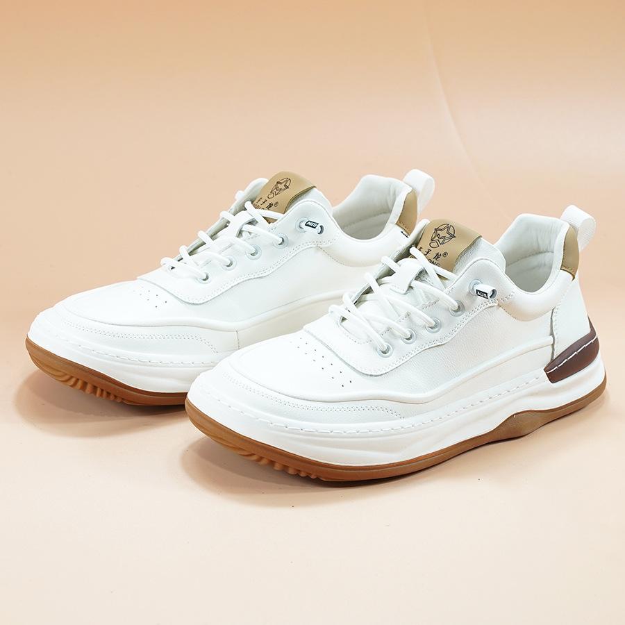 Кожаная мужская обувь новая осень универсальный тренд кривая голова белая обувь мужская толстая подошва дышащая кожаная обувь мужская повседневная обувь для скейтборда