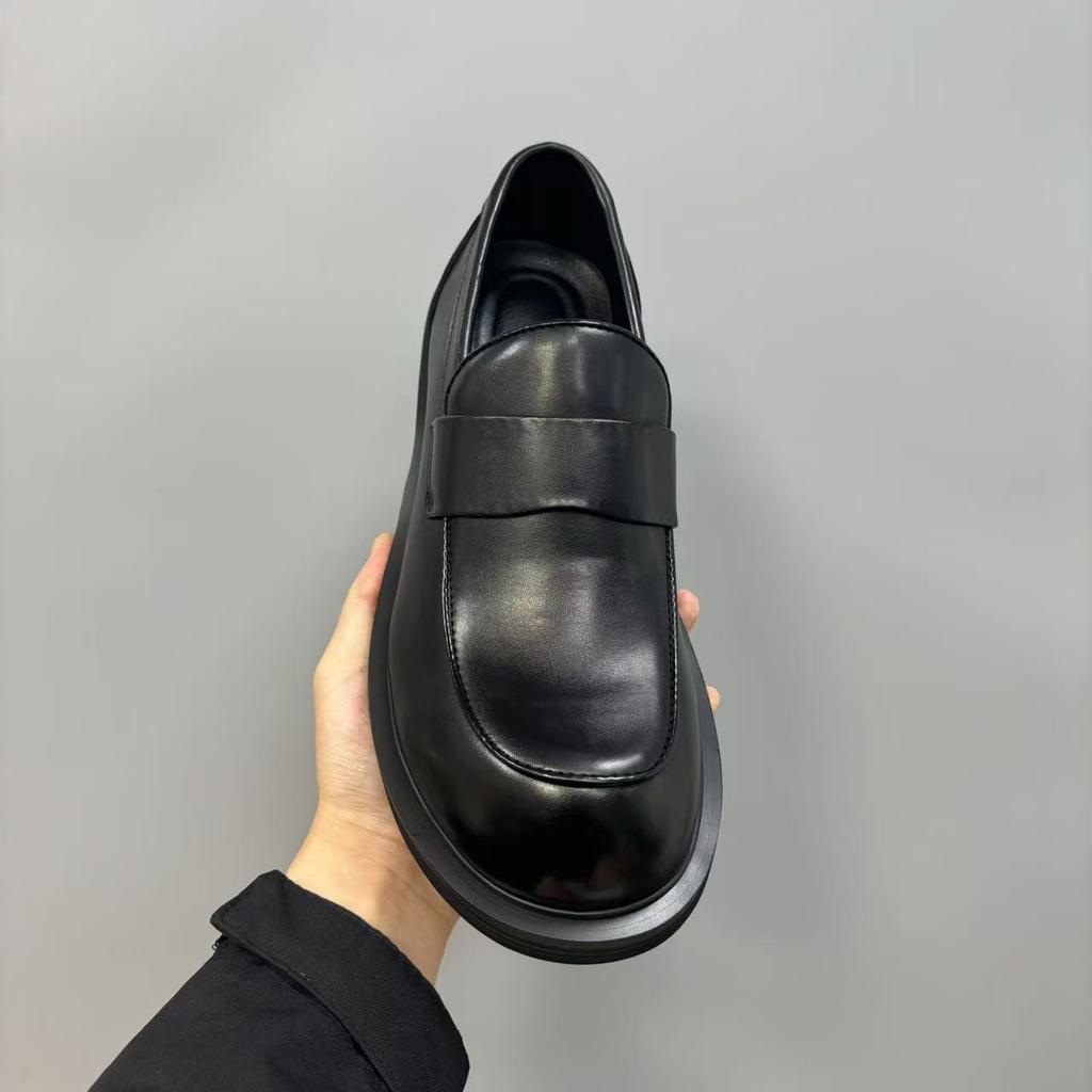 Кожаные туфли с большой головой Кожаные туфли Европейская станция Мужские деловые повседневные ботинки челси Квадратный носок Черные Нескользящие Универсальные Дышащие
