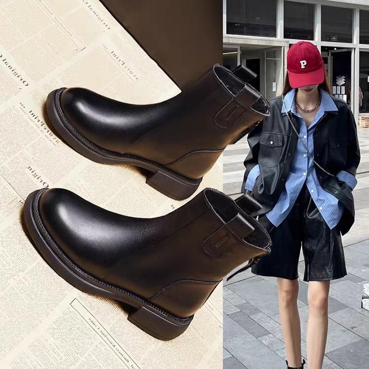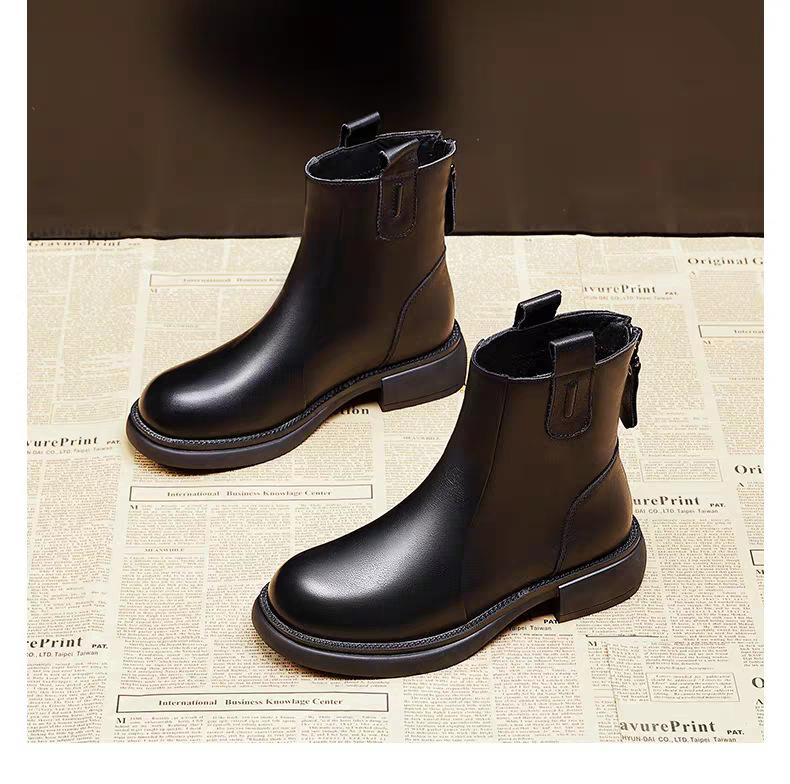 Женские тонкие ботинки из мягкой кожи 2025 новая плоская подошва задняя молния весенне-осенние одинарные ботинки осенне-зимние бархатные ботинки Мартин короткие ботинки