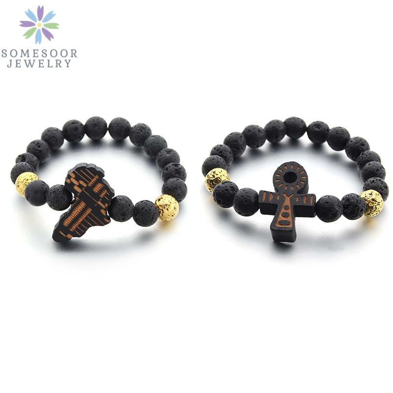 SOMESOOR Египетский браслет Анкх Деревянный Браслет с гравировкой карты Африки Бусины из лавового камня Этнические шармы Браслет для женщин и мужчин Подарки