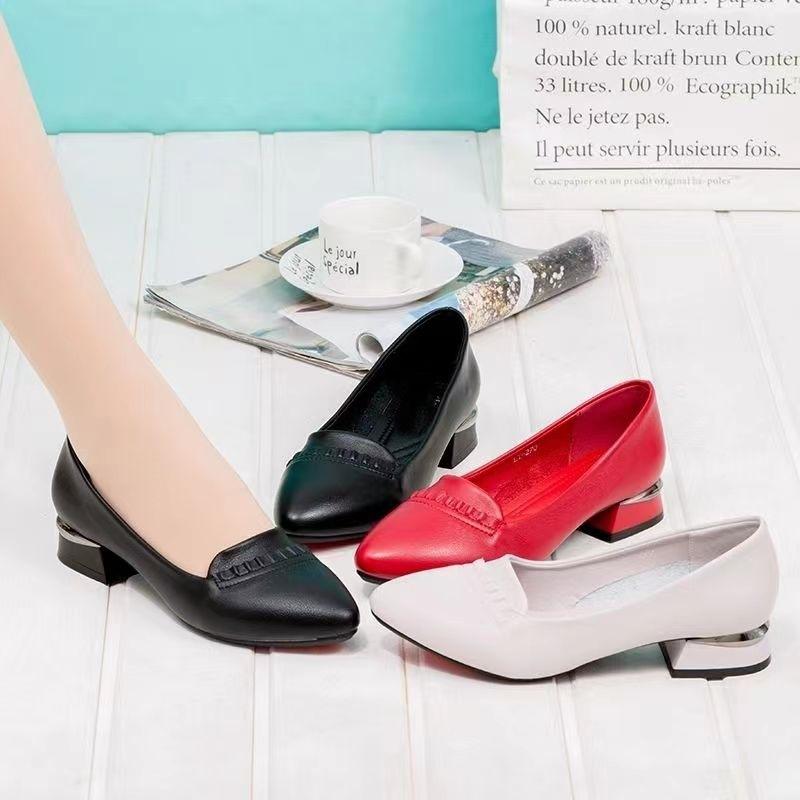Весенне-осенняя женская обувь новая модная одинарная обувь средний каблук квадратный каблук круглый носок мелкий вырез повседневная универсальная профессиональная обувь низкий верх мягкая
