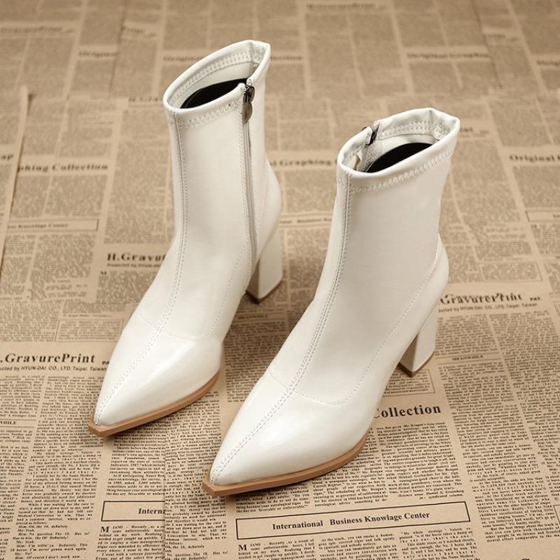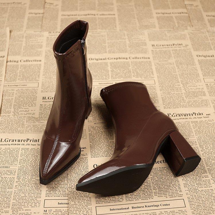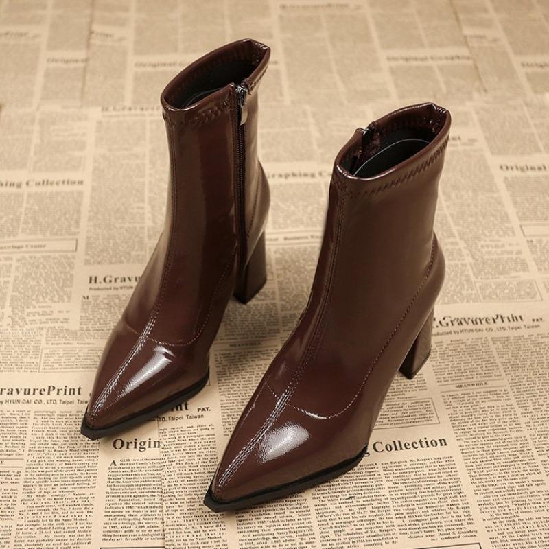 Женские остроносые ботильоны на толстом каблуке Женские осенние ботильоны на высоком каблуке Женские модные ботинки в ретро-стиле с темпераментом Botas Mujer