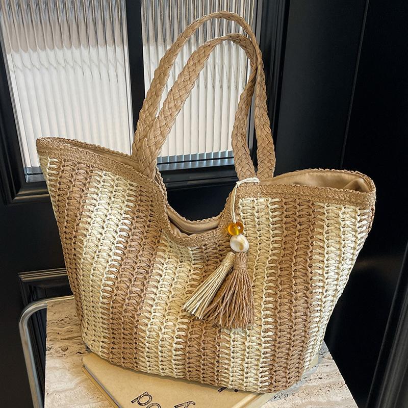 Новая соломенная сумка в вертикальную полоску, сумка высокой ценности, женская наплечная сумка-тоут, вязаная сумка, пляжная сумка в отпускном стиле