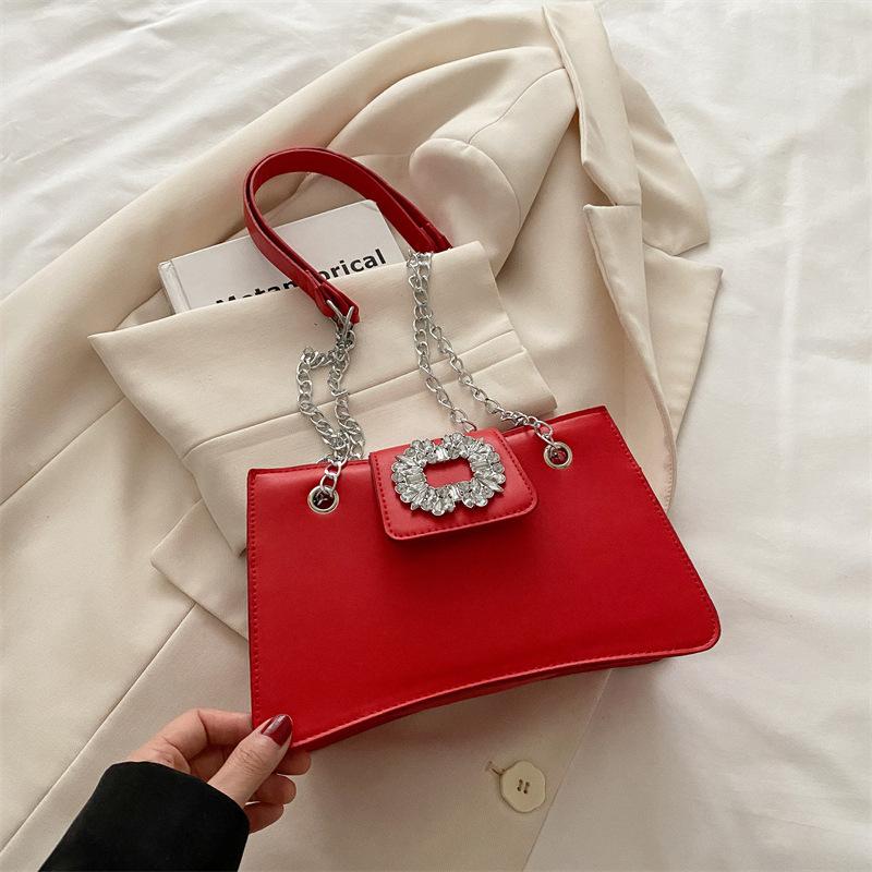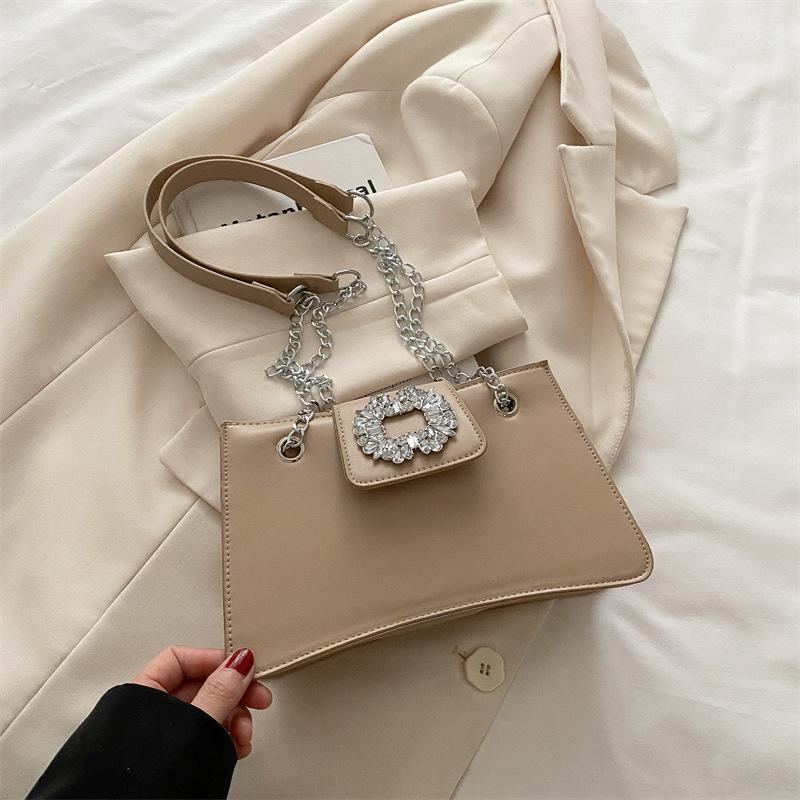 Корейская версия сумки, инкрустированной бриллиантами, женская летняя 2025, новая трендовая модная нишевая сумка под мышкой, универсальная сумка через плечо на цепочке