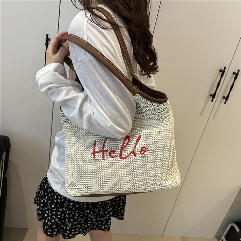 Large capacity straw woven tote bag women's 2025 new summer fashion woven bag versatile commuter shoulder tote bag