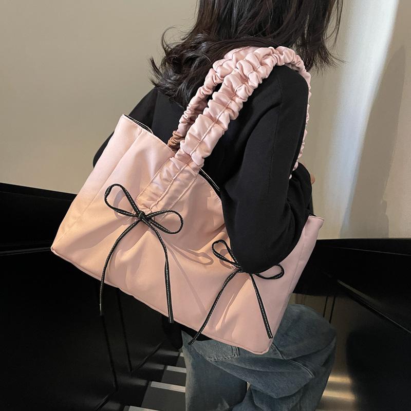Корейская версия модной сумки через плечо с бантом 2025 новая плиссированная сумка-тоут большой вместимости в стиле слоучи, зарубежная сумочка — купить товар онлайн с бесплатной доставкой по всему миру!