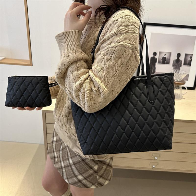 2025 новая повседневная простая наплечная сумка-подмышка для поездок на работу, большая вместимость, зарубежный стиль, ромбовидная вышивка нитью, женская сумка, большая сумка-тоут