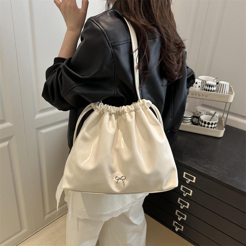Сумка-ведро с кулиской и складками женская 2025 трендовая новая летняя повседневная вместительная сумка-тоут на плечо