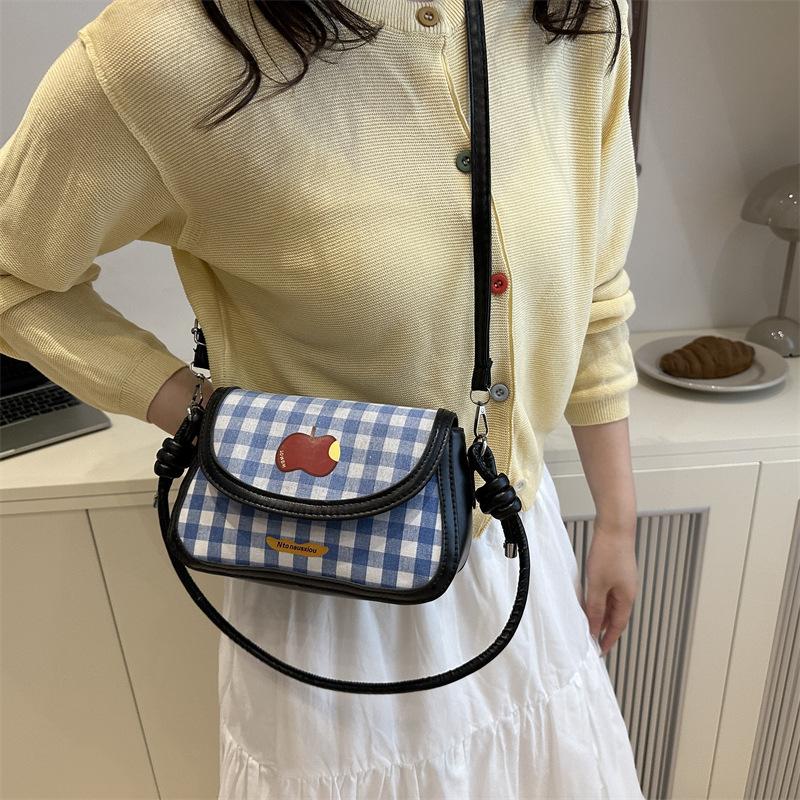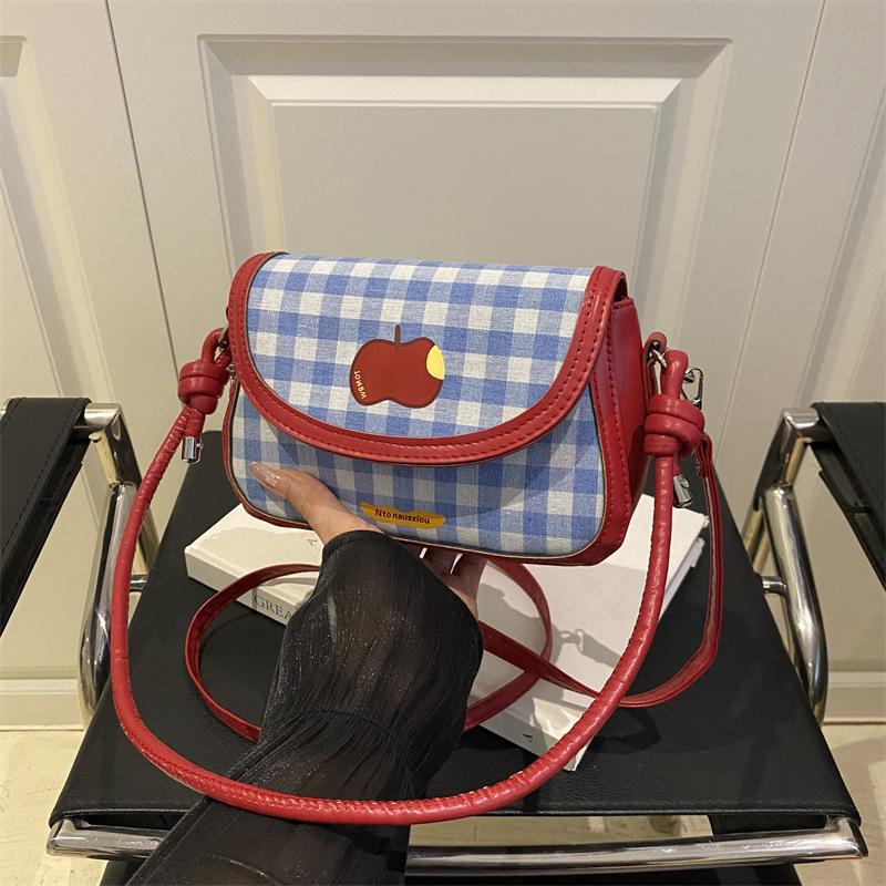 Корейская версия клетчатая мини-сумка через плечо 2025 контрастная вышивка цепочка сумка-мессенджер милая и симпатичная портативная модная сумка-седло