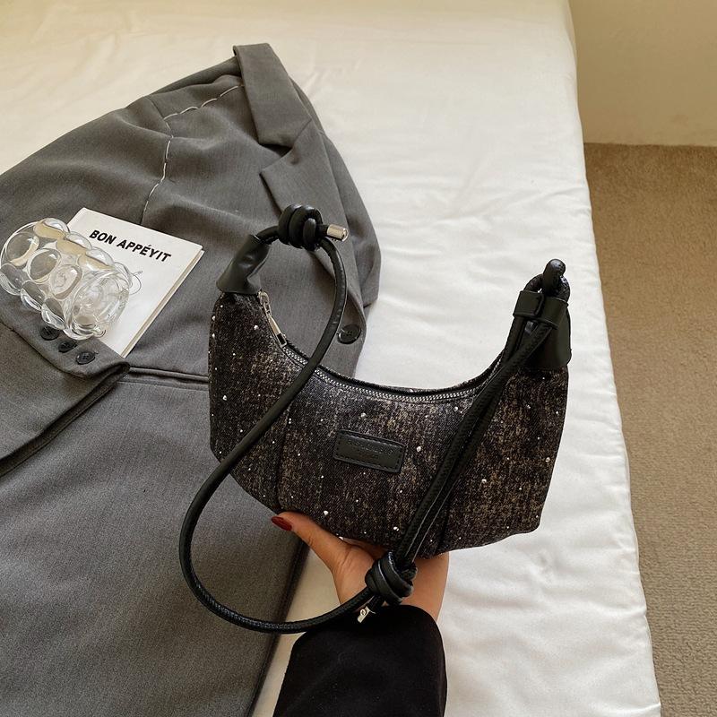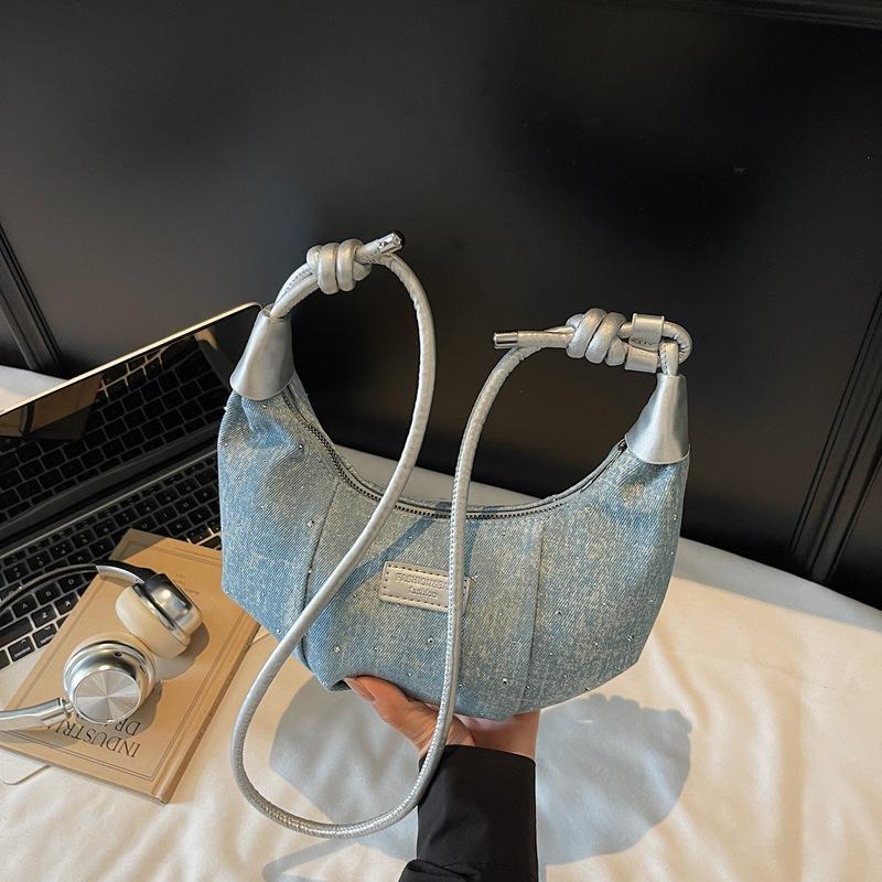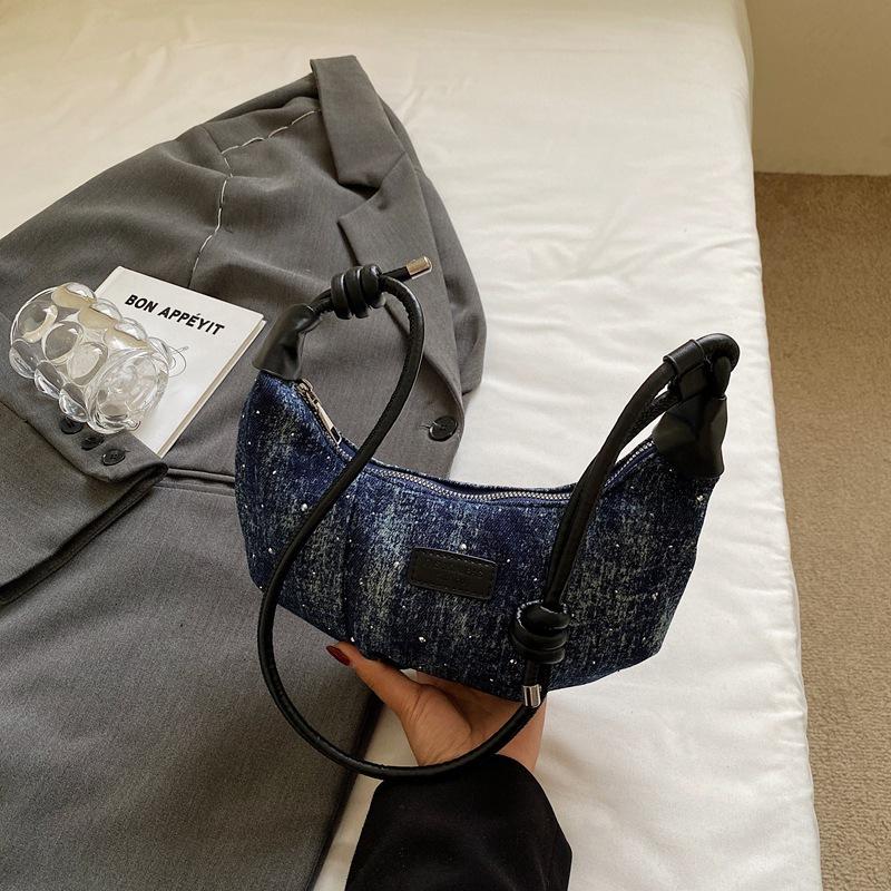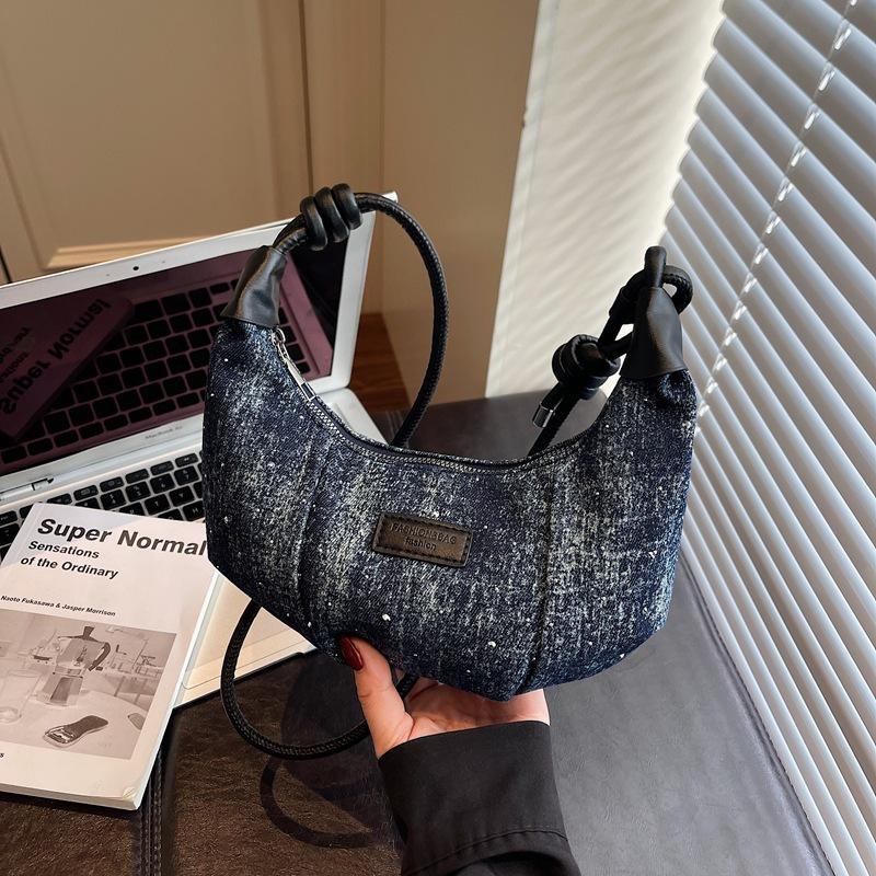2025 осень деним новая изысканная сумка подмышку из телячьей кожи модная универсальная сумка через плечо для通勤