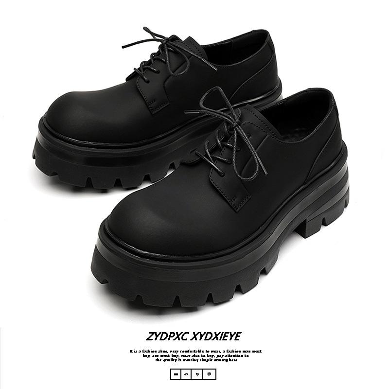 Туфли дерби для通勤, туфли из кожи с большой головкой, мужские на высокой платформе, в британском стиле, с круглым носком, черные, с высоким чувством стиля 8234-E