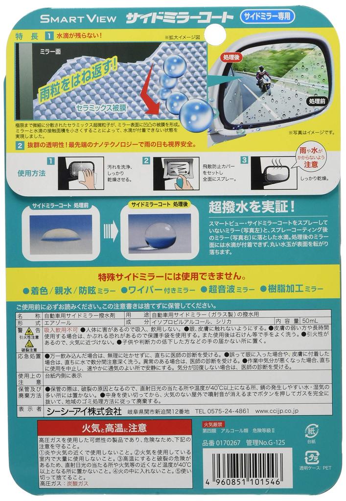 CCI Smart View Водоотталкивающее покрытие для автомобильного стекла, для боковых зеркал, стойкость 1 месяц, 50 мл, G-125
