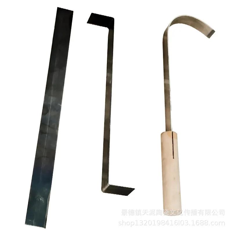 Инструмент для обрезки из нержавеющей стали и керамики, изогнутый нож-скип, острое лезвие, сделай сам, грубая деревянная ручка, текстурная резьба, инструменты для гончарной глины