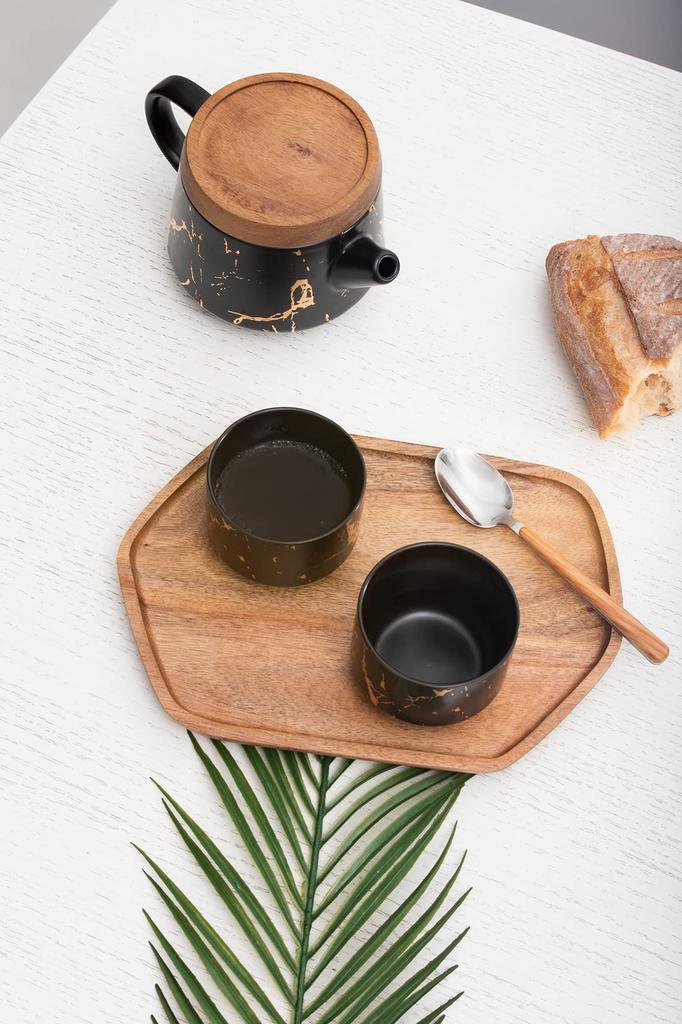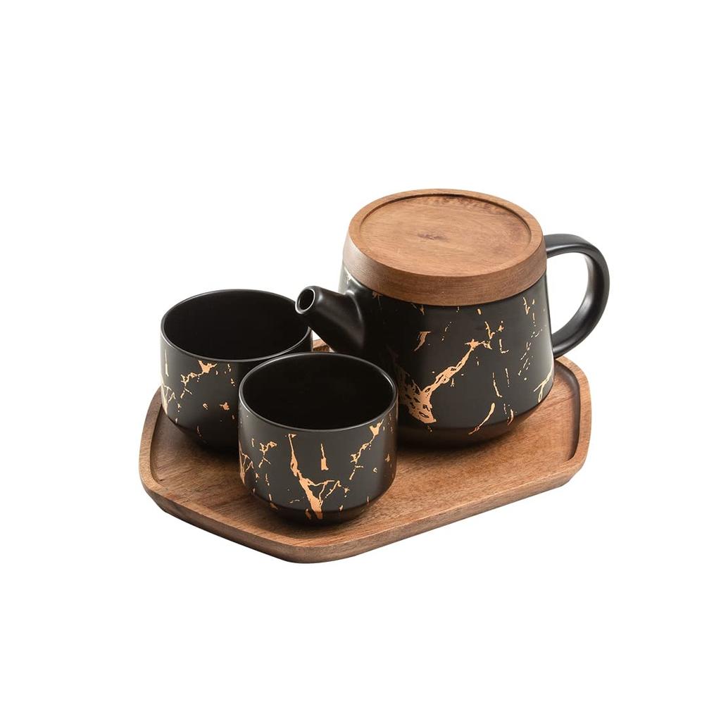 [Set contents] One teapot, two cups, and a stainless steel tea strainer. This set includes one teapot and two cups, each with a non-slip wavy pattern. The simple and elegant packaging makes it an ideal gift for housewarmings, weddings, or home parties.