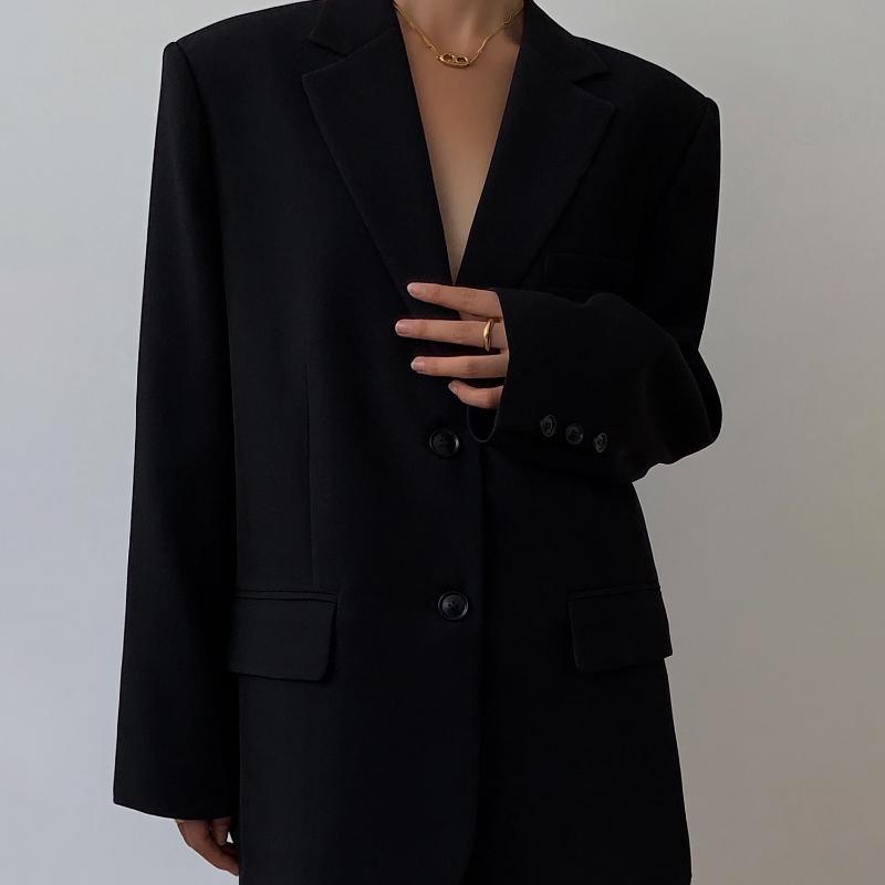 Весна Осень Новое Корейское Свободное Ретро Повседневное Пальто Женский Костюм Черный Тонкий