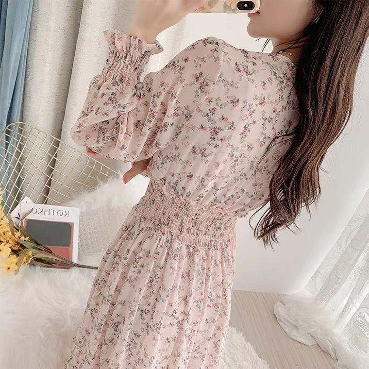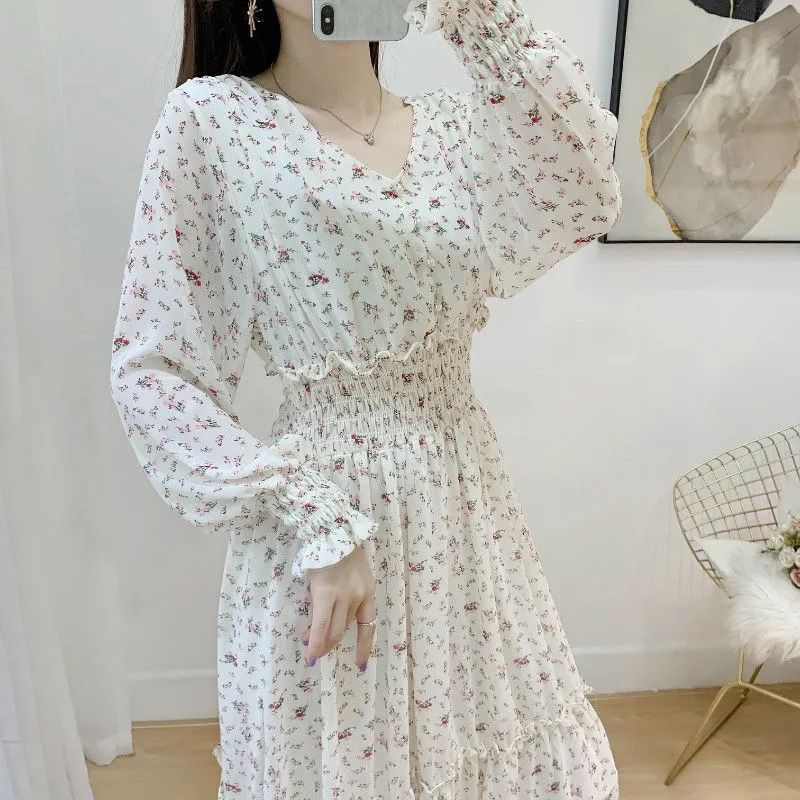 Осенне-весенние многослойные платья, модное женское повседневное платье с длинным рукавом и v-образным вырезом с цветочным принтом