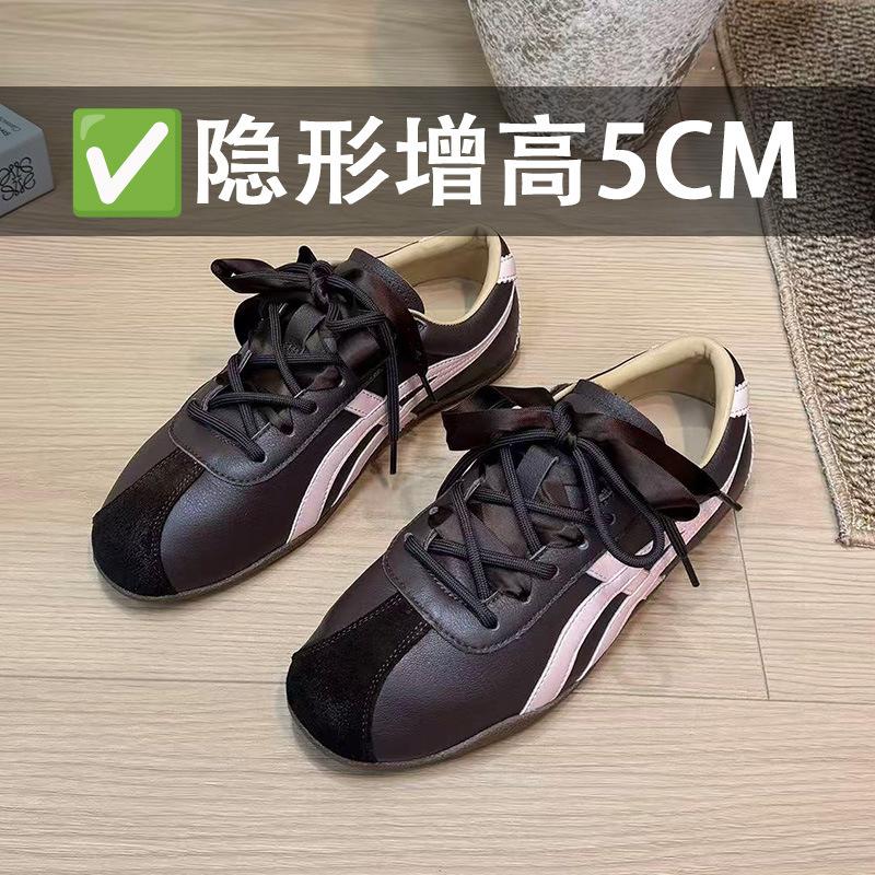 Версия из коровьей кожи~ 5 см увеличение внутренней высоты ретро немецкие тренировочные туфли женские туфли Форреста Гампа 2025 осень новая кожаная спортивная и повседневная обувь