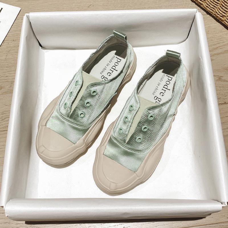 Версия из овчины~ атласные нишевые туфли весна-осень 2025 повседневные парусиновые на толстой подошве растворяющиеся испанские маленькие белые туфли женские