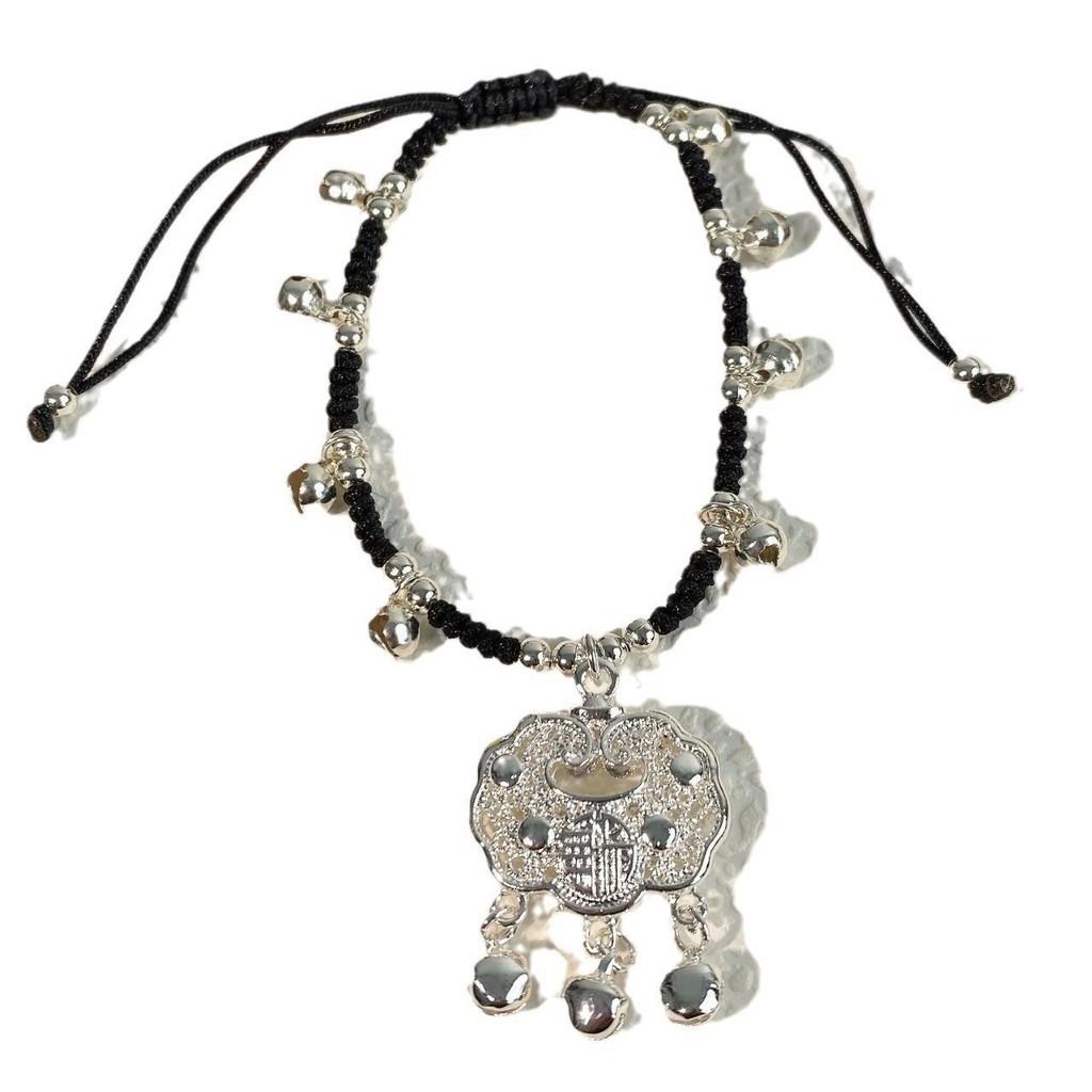 Изготовленный из высококачественного сплава и отделанный прочным гальваническим покрытием, этот браслет обещает долговечную красоту и устойчивость.. Ярко-красный шнурок, цвет, глубоко укоренившийся в китайской традиции, символизирует удачу и защиту, а замок мира, популярный мотив в китайской культуре, добавляет уникальный штрих очарования и элегантности.. Браслет украшен звенящими колокольчиками, которые не только усиливают его эстетическую привлекательность, но и издают мягкий, успокаивающий перезвон при каждом вашем движении, создавая безмятежную и гармоничную ауру.
