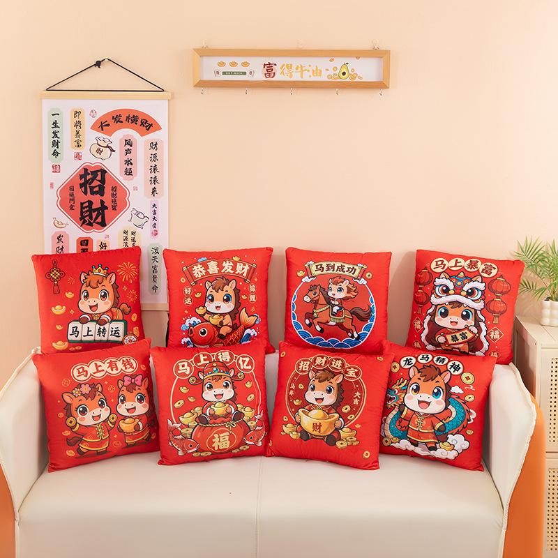 2026 год Лошади талисман двусторонняя печать квадратная декоративная подушка подарок для мероприятия ежегодного собрания компании украшение Гун Си Фа Цай