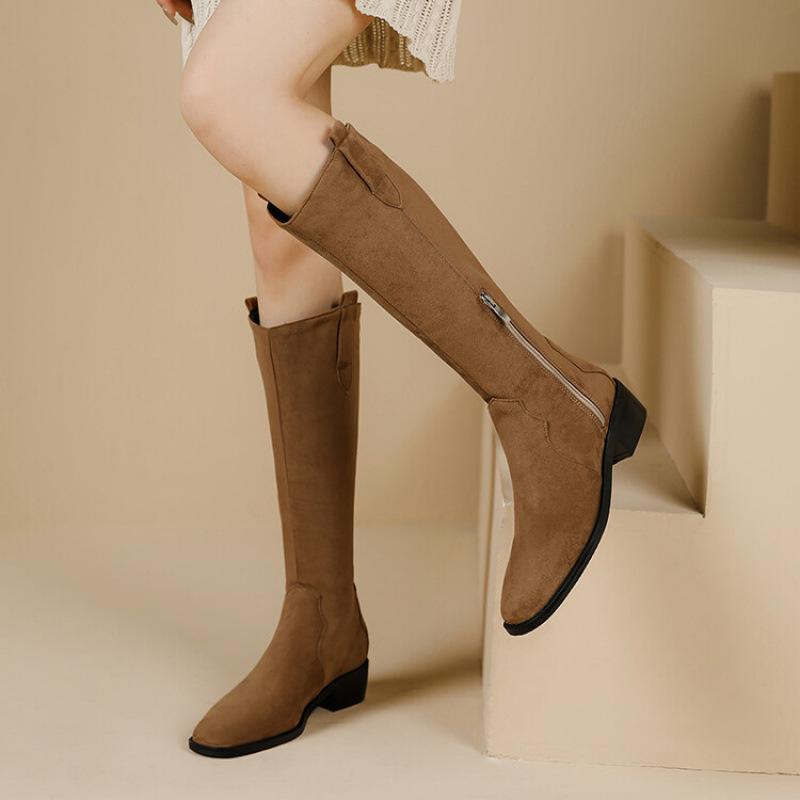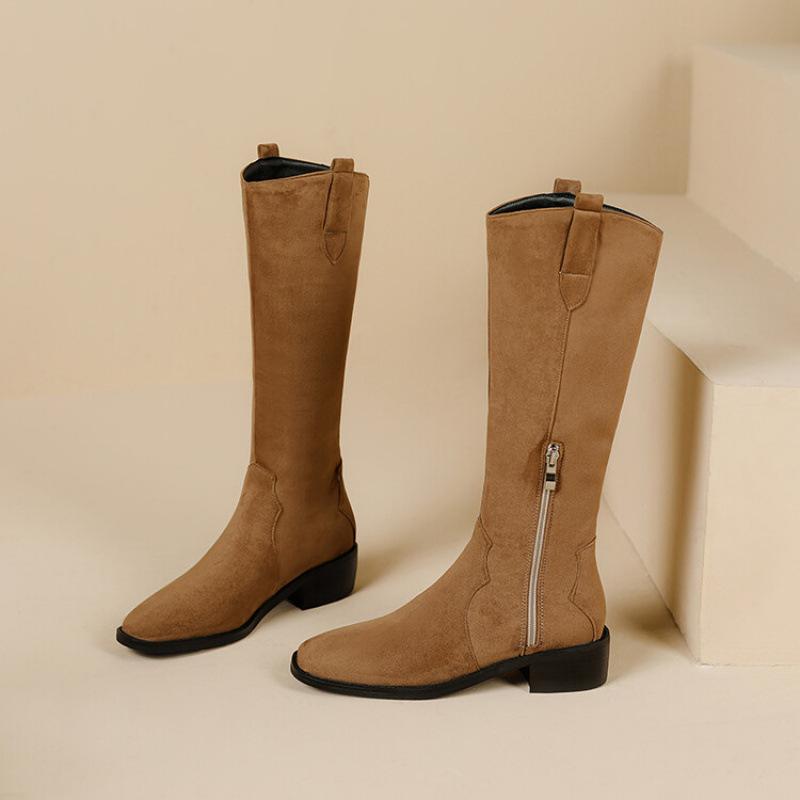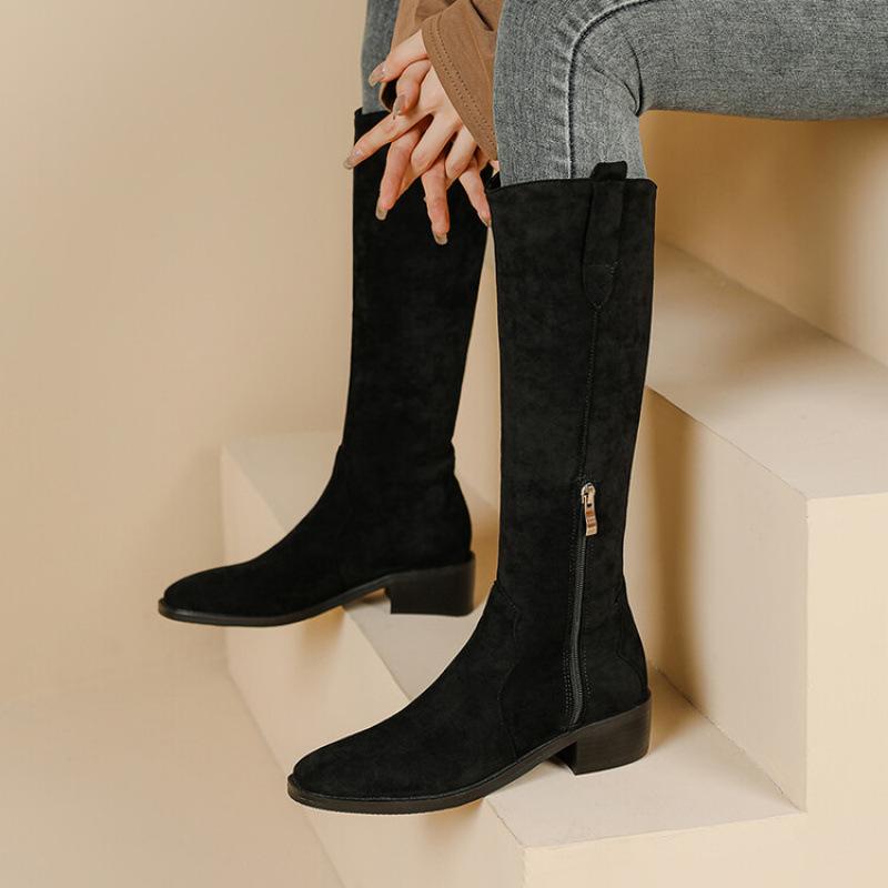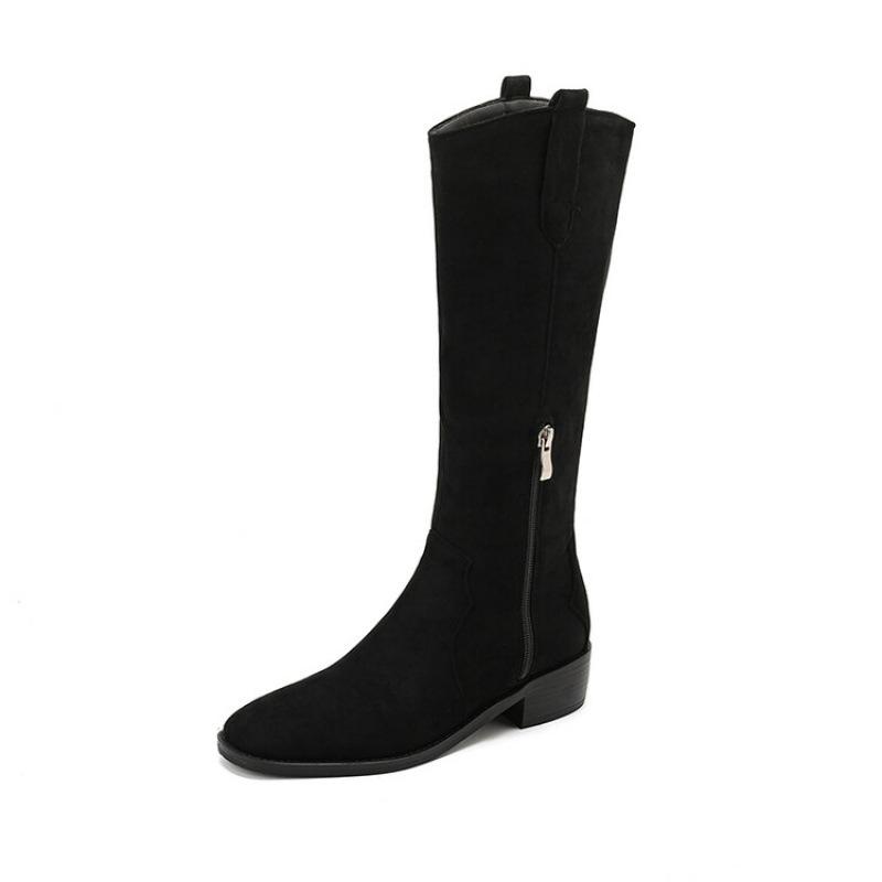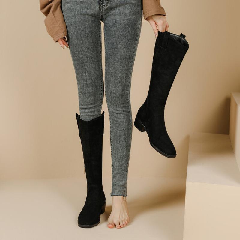 Новая корейская версия модные ботинки большого размера женские рукава однотонные круглый носок удобные женские ботинки резиновая подошва средний каблук высокие ботинки женские