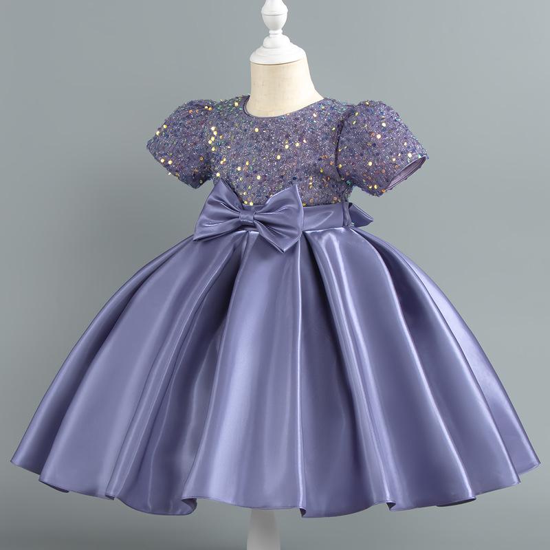 Это элегантное вечернее платье для девочек выполнено из роскошного атласа с пайетками, создающего ослепительный эффект, идеально подходящий для особых случаев.. Этот высококлассный костюм со стильным коротким рукавом и пышным силуэтом идеально подходит для дней рождения и других торжеств.. Его мягкий полиэстеровый материал обеспечивает комфорт, сохраняя при этом шикарный и изысканный вид.