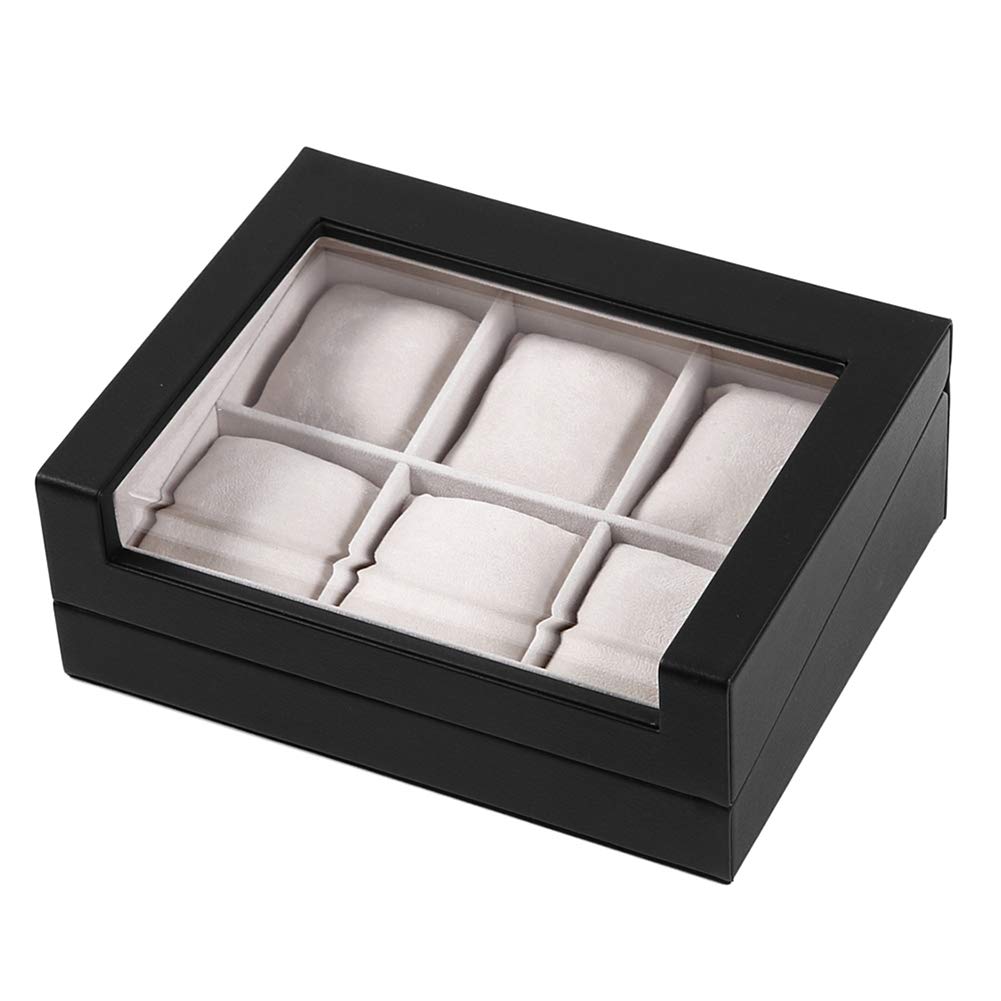 Черная шкатулка для часов из синтетической кожи, вмещающая 6 часов.