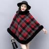 Рукава-крылья летучей мыши, клетчатая накидка-шаль, женский пуловер, меховой воротник, кольцо, теплая накидка-жакет