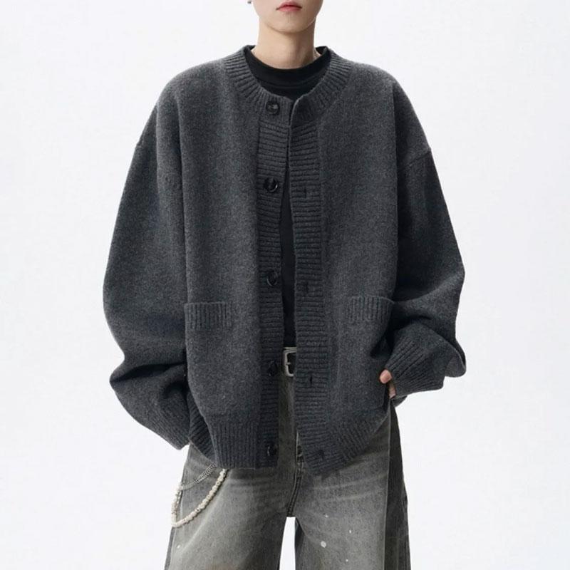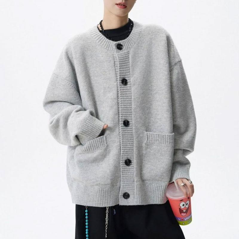 Осень Зима Новые Винтажные Свитера Американские Однотонные Мужские Повседневные С Круглым Вырезом Свободные Однобортные Вязаные Кардиганы