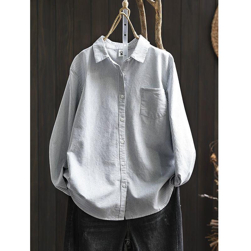 Карманная рубашка с длинным рукавом в вертикальную полоску для женщин, свободный повседневный и универсальный базовый топ — купить товар онлайн с бесплатной доставкой по всему миру!