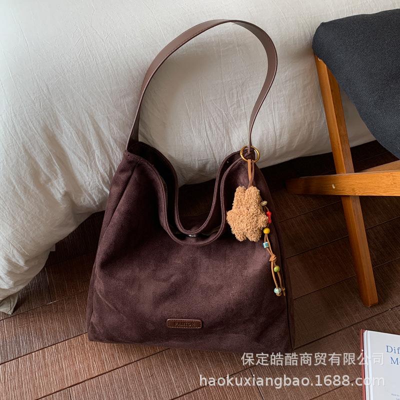 Ретро сумка женская большой вместимости 2025 новая осень и зима универсальная простая наплечная сумка текстурная сумка-тоут для поездок