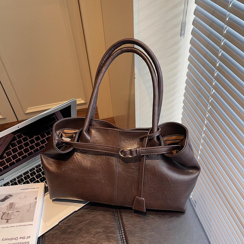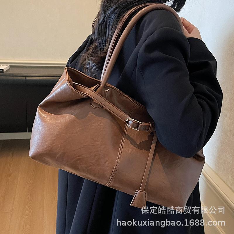Сумка большой вместимости женская 2025 новая осень и зима легкая роскошь нишевая высококлассная ретро на плечо сумка-тоут для поездок на работу