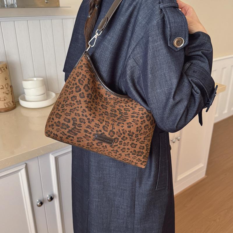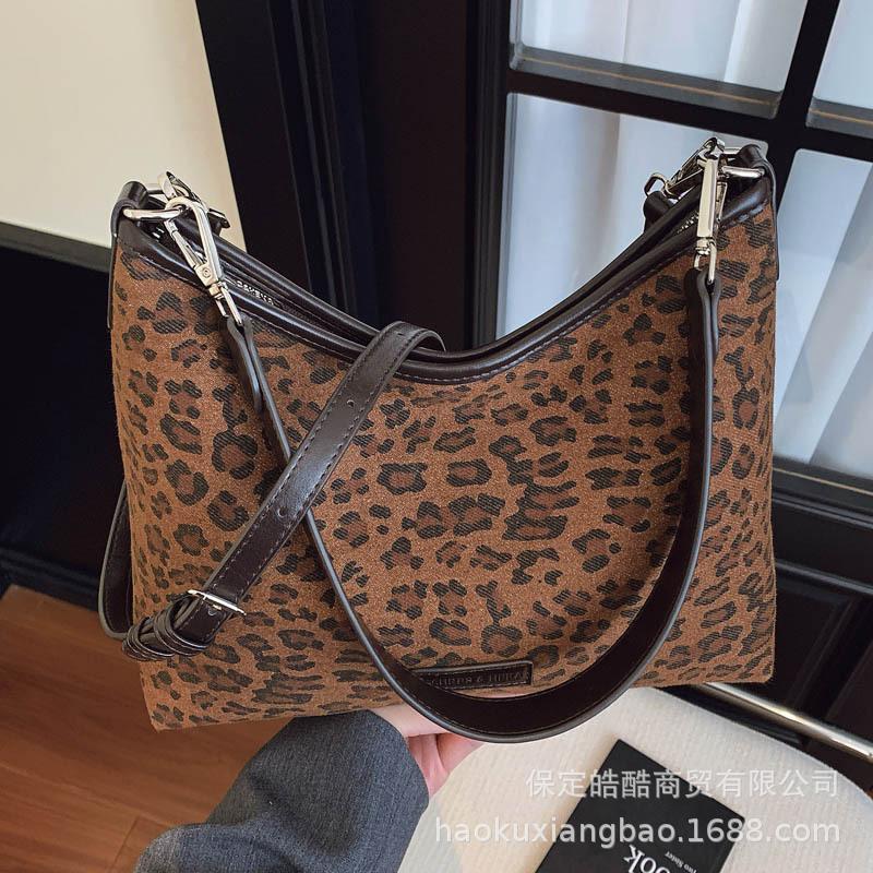 Сумка с леопардовым принтом женская большой вместимости 2025 новая осенне-зимняя повседневная на плечо подмышку универсальная рабочая сумка-тоут для поездок