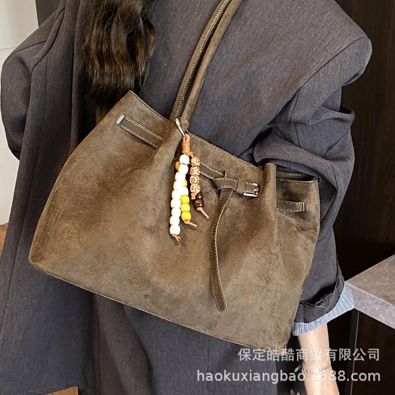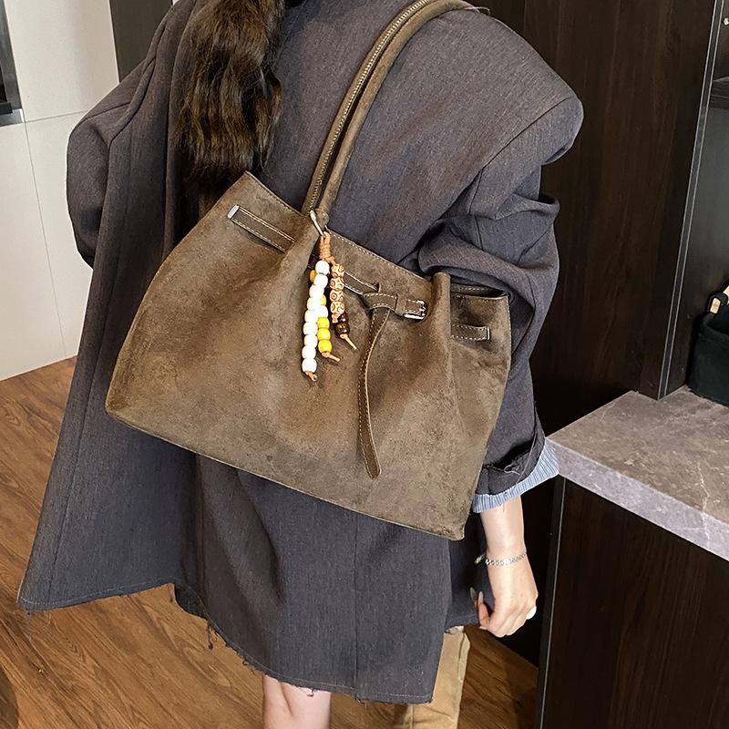 Вместительная замшевая сумка женская осень-зима 2025 новая универсальная повседневная сумка через плечо студенческая сумка-тоут для занятий