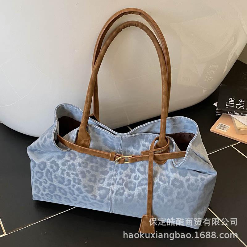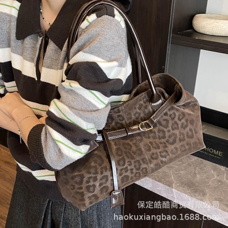 Сумка с леопардовым принтом женская большой вместимости 2025 новая осенне-зимняя повседневная нишевого дизайна на плечо подмышку сумка-тоут для通勤