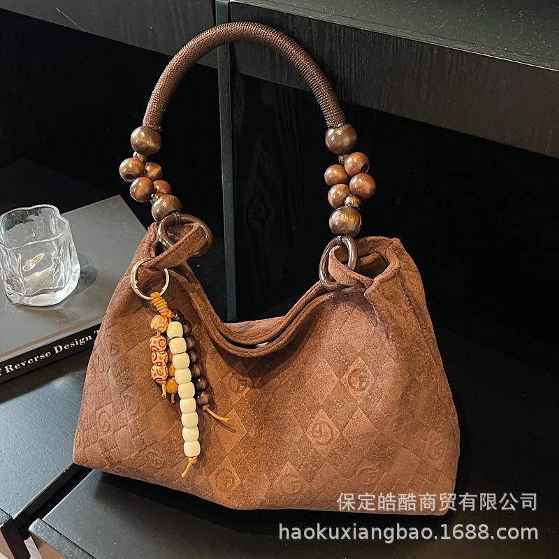 Премиальная ретро сумка подмышку женская 2025 новая модная замшевая сумка на плечо большой вместимости сумка-тоут