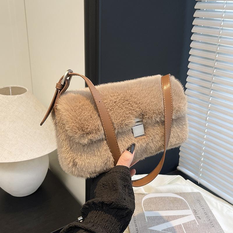 Плюшевая сумка женская большой вместимости 2025 новая осень и зима универсальная повседневная на плечо подмышку плюшевая маленькая квадратная сумка
