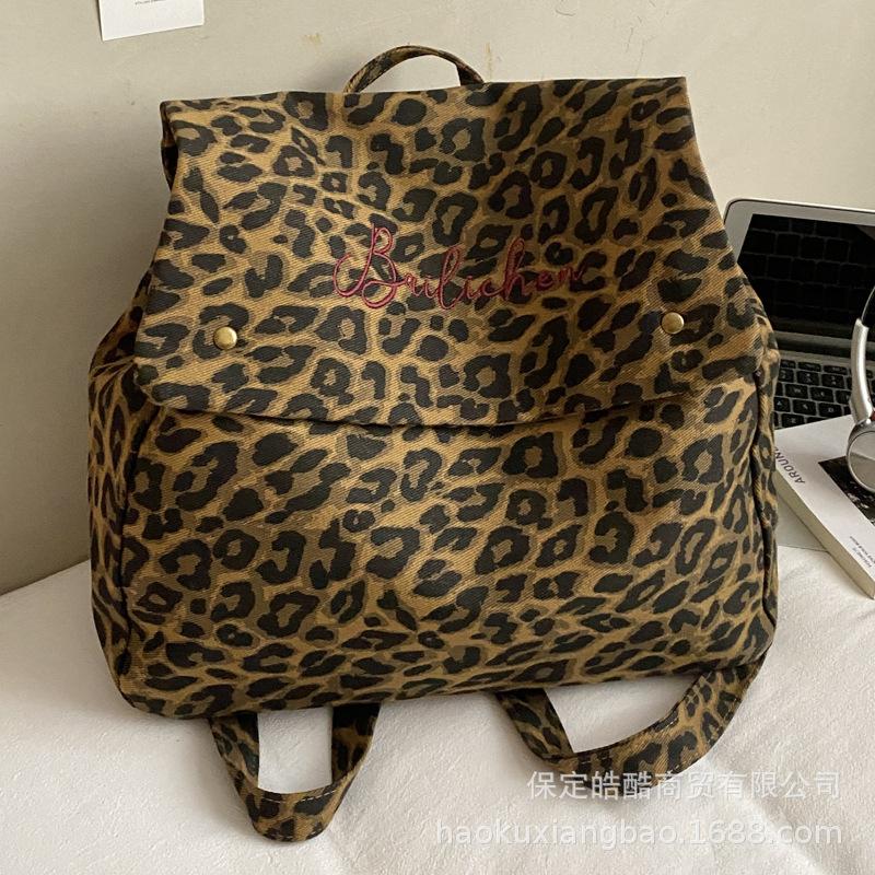 Рюкзак с леопардовым принтом, женский, модный, нишевый дизайн, студенческая сумка для занятий, холщовая ретро сумка-тоут, дорожный рюкзак